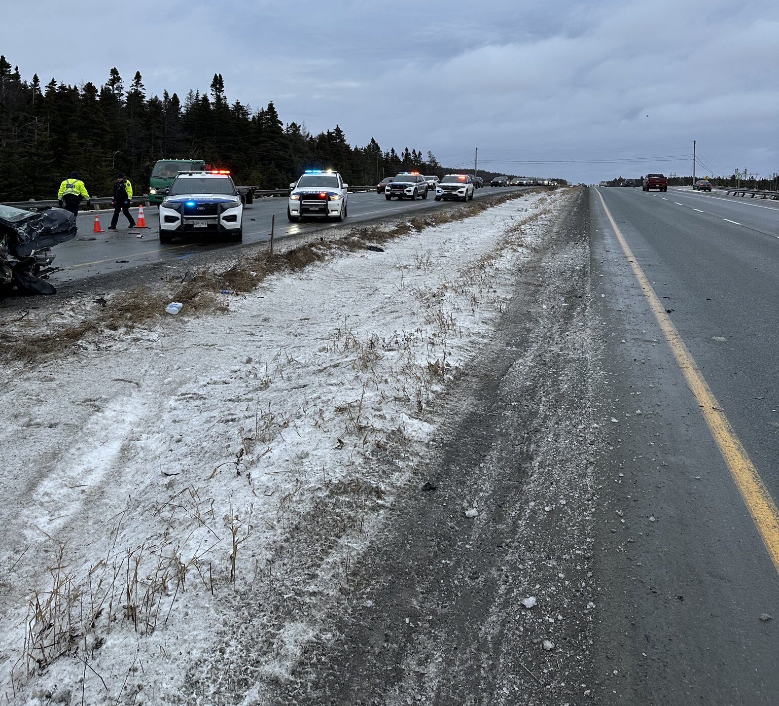 It happened in the westbound lane, just east of the Team Gushue Highway exit just after 8:00am. Two people were sent to hospital for injuries believed to be non-life threatening.