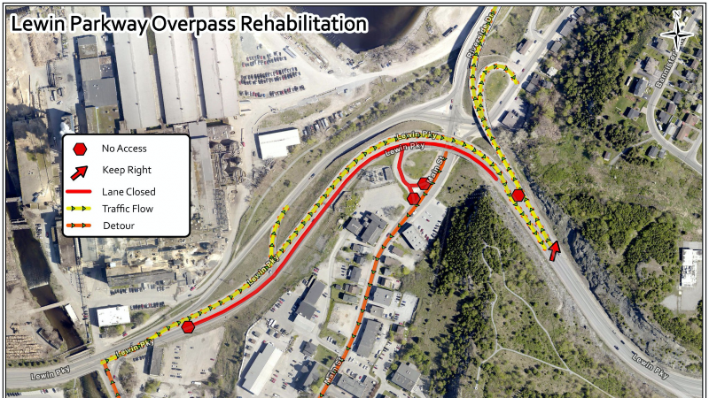 The On-ramp on Main Street will be closed and traffic will be detoured through Main Street, onto Mill Road and then back onto Lewin Parkway.