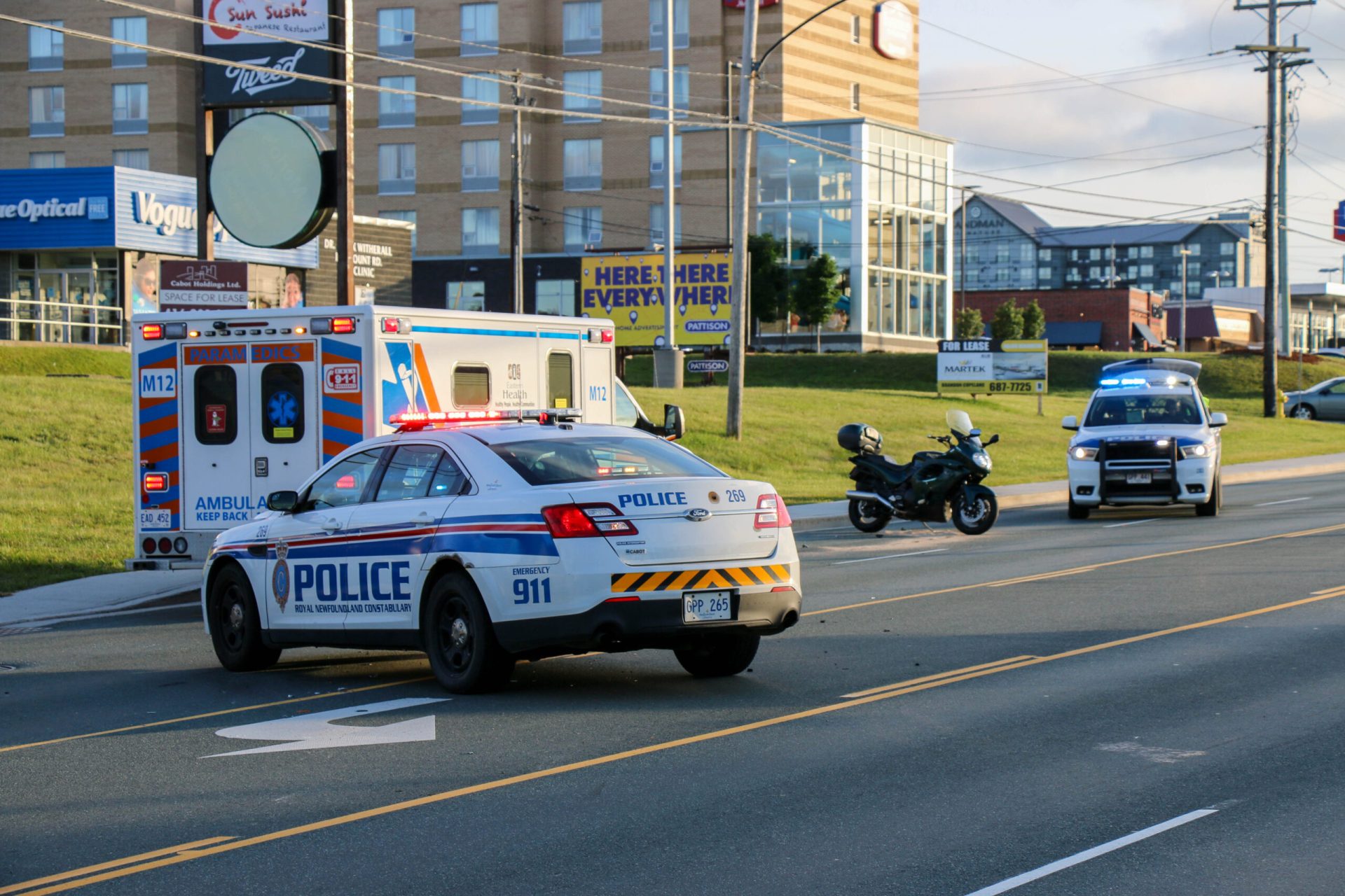 Emergency crews were called to Kenmount Road, just west of Pippy Place, shortly after 7:00 p.m. following reports of the collision. A motorcycle lay in the eastbound lanes of the road, with a damaged vehicle a short distance away. The rider of the motorcycle was taken to hospital with injuries not believed to be serious. No occupants of the car were injured.