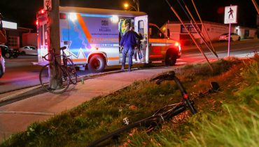 Emergency crews responded to the scene, at the intersection of King’s Bridge Road and Forest Road, shortly after 7:30 p.m.. A vehicle and bicycle had collided, knocking the cyclist to the ground. They were helped to a stretcher and taken to hospital with injuries believed to be minor.