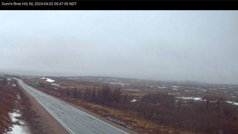 Across Labrador, most roads are bare and wet with icy patches and good visibility.