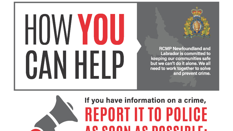 Those who witness a crime or suspicious activities, or are a victim of crime, are strongly encouraged to contact the Happy Valley-Goose Bay Detachment directly as soon as possible to make a report – call 709-896-3383 or attend the detachment in person. For emergencies, please dial 911. Crimes may also be reported to Crime Stoppers: #SayItHere 1-800-222-TIPS (8477), visit www.nlcrimestoppers.com or use the P3Tips app.