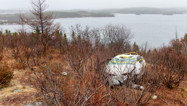 Emergency personnel responded to the scene, in the westbound lanes of the highway near the Foxtrap weigh scales, shortly before 10:00 p.m.. The driver of a sedan had struck a young moose, killing the animal and causing significant damage to the car. A second car also struck the moose, causing only minor damage to the vehicle.