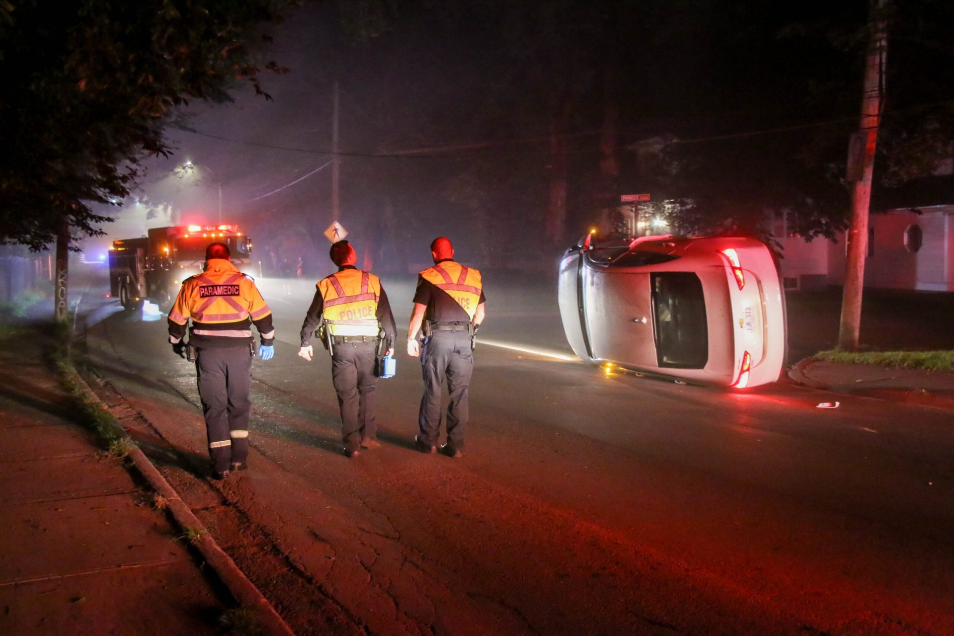 Emergency crews were called to Portugal Cove Road, near Pringle Place, shortly after 10:00 p.m. following the crash. The driver of a southbound sedan lost control of the vehicle, striking a utility pole and snapping it near the ground. The collision caused the vehicle to roll onto its side, and broke a second utility pole roughly halfway from the ground.