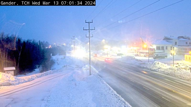 From Churchills Falls to the Quebec Border, roads are partly snow-covered. Roads are bare from Churchill Falls to Happy Valley-Goose Bay and snow-covered south and east of Kenamu River.