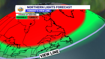There is an excellent chance of seeing the Northern Lights across much of the Province overnight as a G3 Geomagnetic storm is forecast.