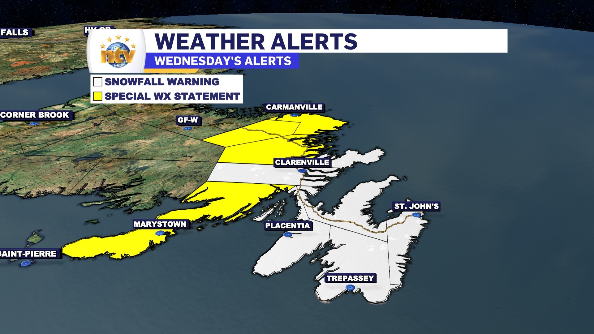 Wednesday brings a Snowfall Warning for the Avalon Peninsula, Northeast Newfoundland