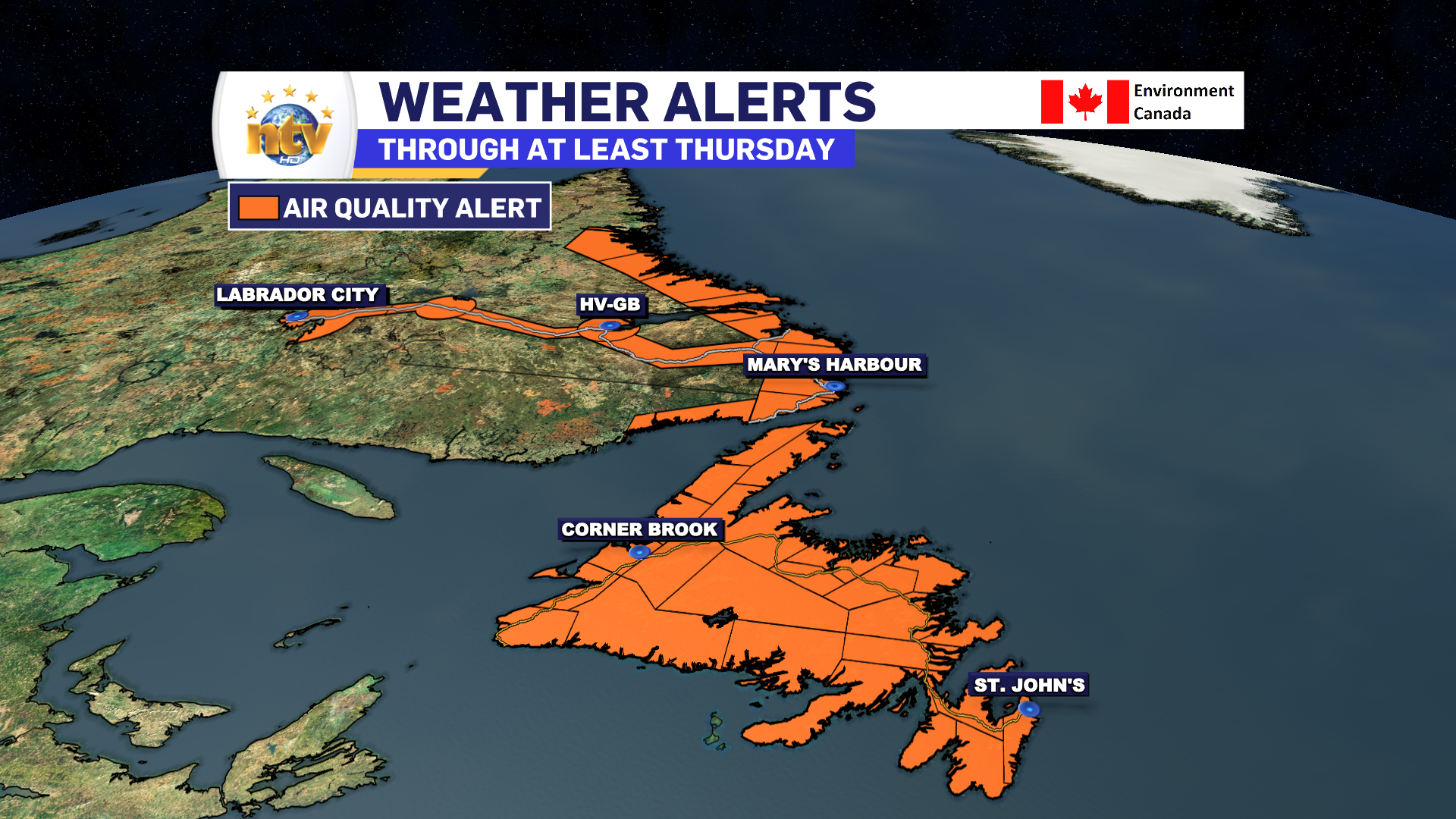 Remarks for Newfoundland: Smoke plumes from distant forest fires can be expected over Newfoundland at various times over the next couple of days or more. The smoke will be more persistent in some areas than others, especially central, western and northern Newfoundland as suggested by latest dispersion models. Some of the smoke will remain aloft while some will descend closer to ground level causing reduced air quality at times. Associated haze will likely give the sun a reddish appearance.