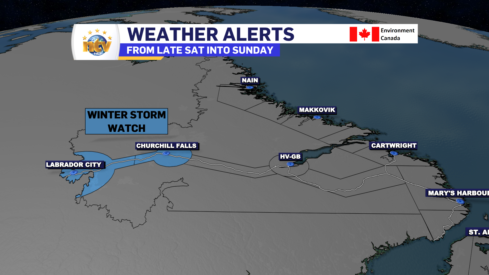 A Winter Storm Watch is in effect for Labrador West from Saturday night until Sunday night. This includes Churchill Falls and Labrador City and Wabush.